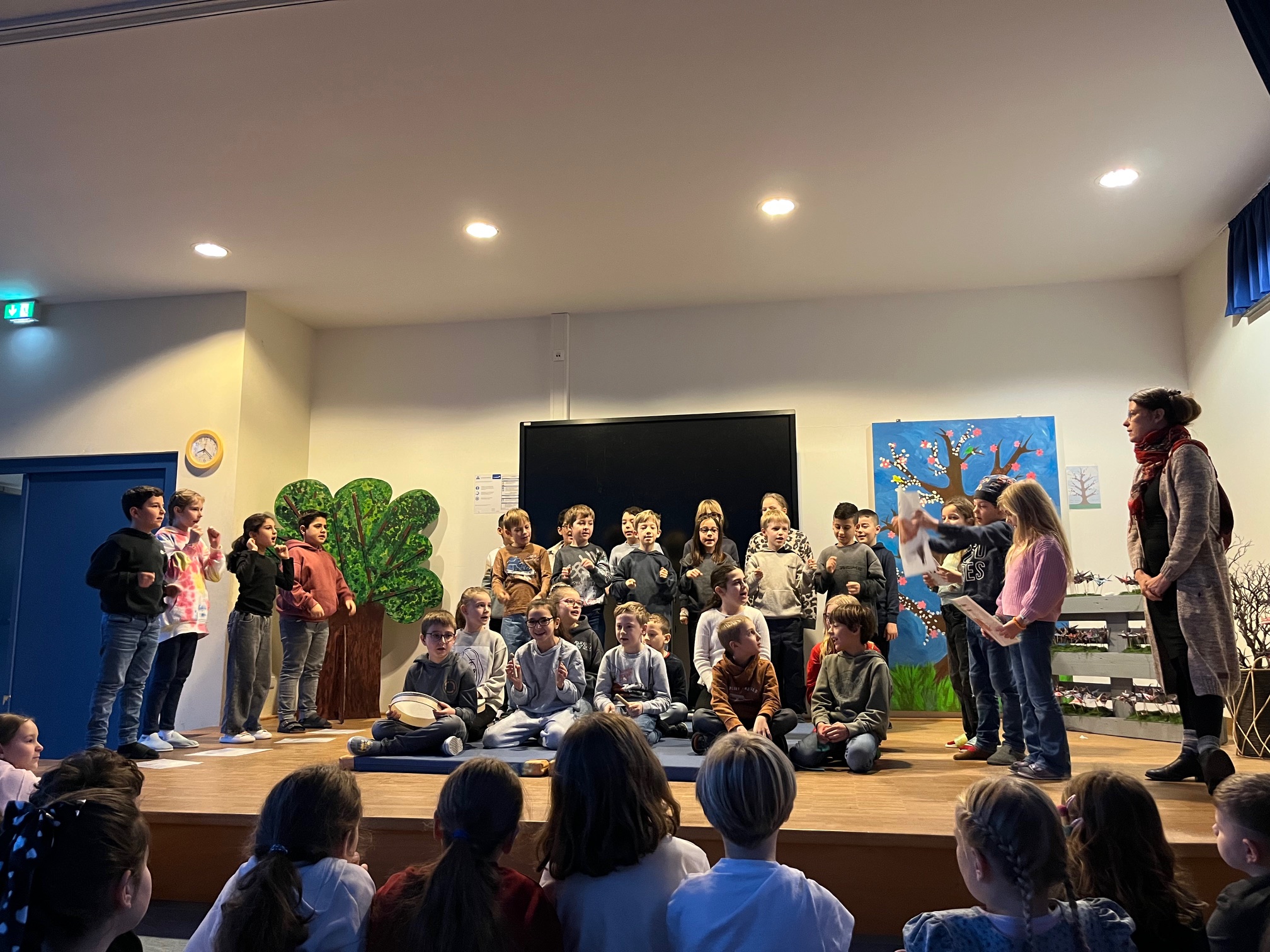 Während der Adventszeit treffen sich die Klassen montags morgens für einen Adventskreis. An beiden Standorten werden Lieder, Gedichte oder Künststücke präsentiert.