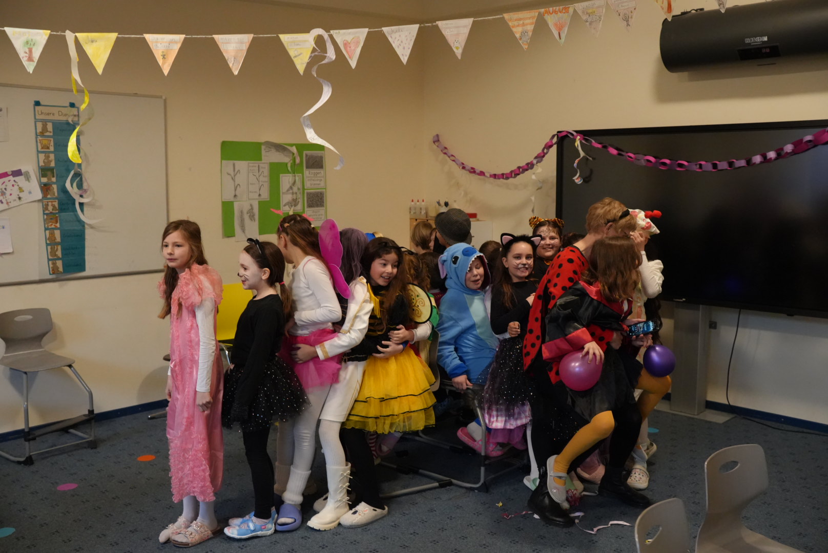 In den Klassen und Bildungshäusern wurde kräftig Karneval gefeiert: Kostüme wurden präsentiert, Spiele gespielt, Kinder geschminkt, in der Turnhalle geklettert und gemeinsam gegessen. Helau!